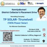 கன்னியாகுமரி மாவட்ட நிர்வாகம் சார்பில், நான் முதல்வன், மாவட்ட திறன் மேம்பாட்டு கழகம் மற்றும் தமிழ்நாடு புத்தொழில் மற்றும் புத்தாக்க இயக்கம் ஆகியவற்றுடன் இணைந்து நடத்தும் (மாவட்ட ஆட்சியரின் வேலைவாய்ப்பு […]