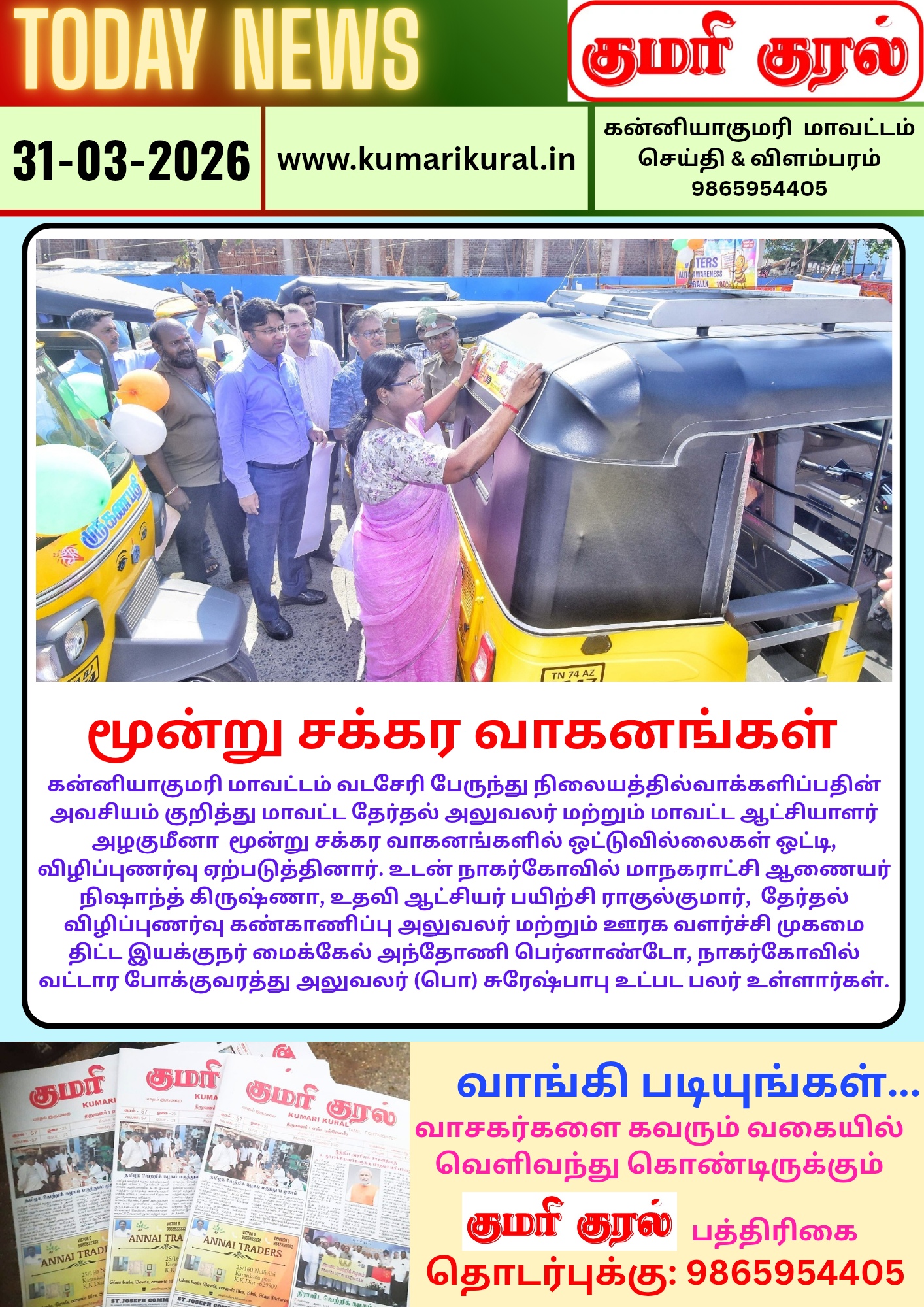 தமிழக வெற்றிக் கழகத்தின் இரண்டாம் ஆண்டு துவக்க விழாவினை முன்னிட்டு கன்னியாகுமரி மத்திய மாவட்டம் வில்லுக்குறி பேரூர் சார்பில் பேரூர் அலுவலகம் மற்றும் பண்டாரக்காடு, மாடத்தட்டுவிளை, பகுதிகளில் கொடியேற்றும் நிகழ்வும் பொதுமக்களுக்கு இனிப்பு வழங்கி மகிழ்வுற்ற நிகழ்ச்சியும் சிறப்பாக நடைபெற்றது.