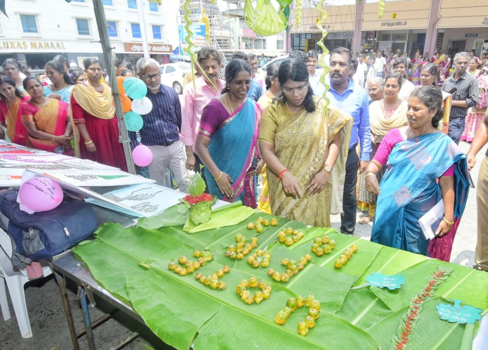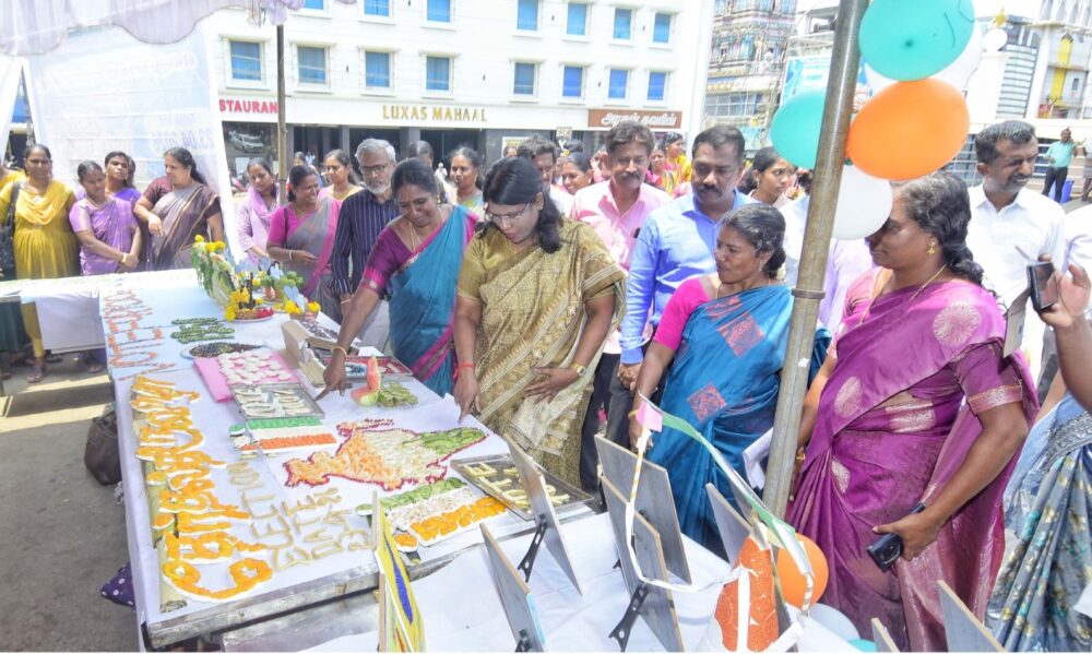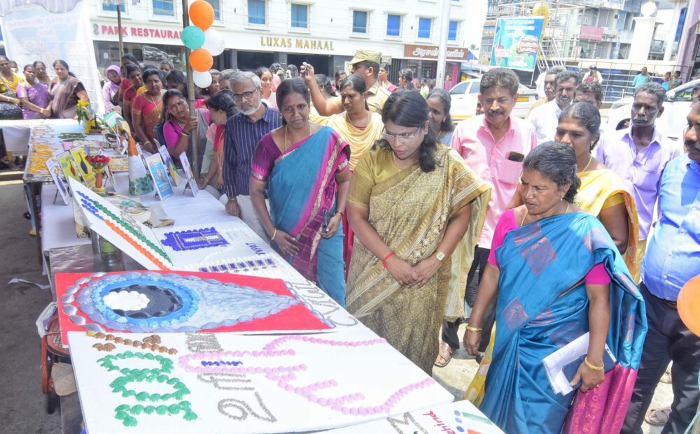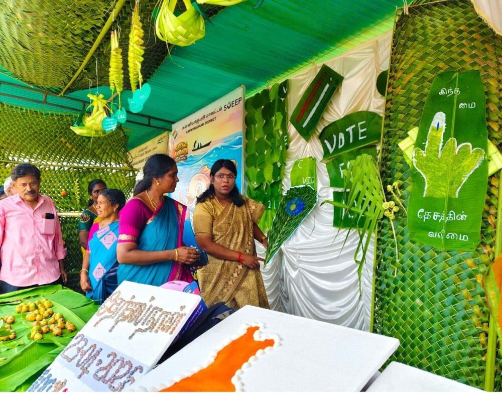 இயற்கை பொருட்கள் மற்றும் பழவகைகள் கொண்டு தயாரிக்கப்பட்ட தேர்தல் விழிப்புணர்வு கண்காட்சி – மாவட்ட தேர்தல் அலுவலர் மற்றும் மாவட்ட ஆட்சியாளர் அழகு மீனா துவக்கி வைத்து பார்வையிட்டார்.