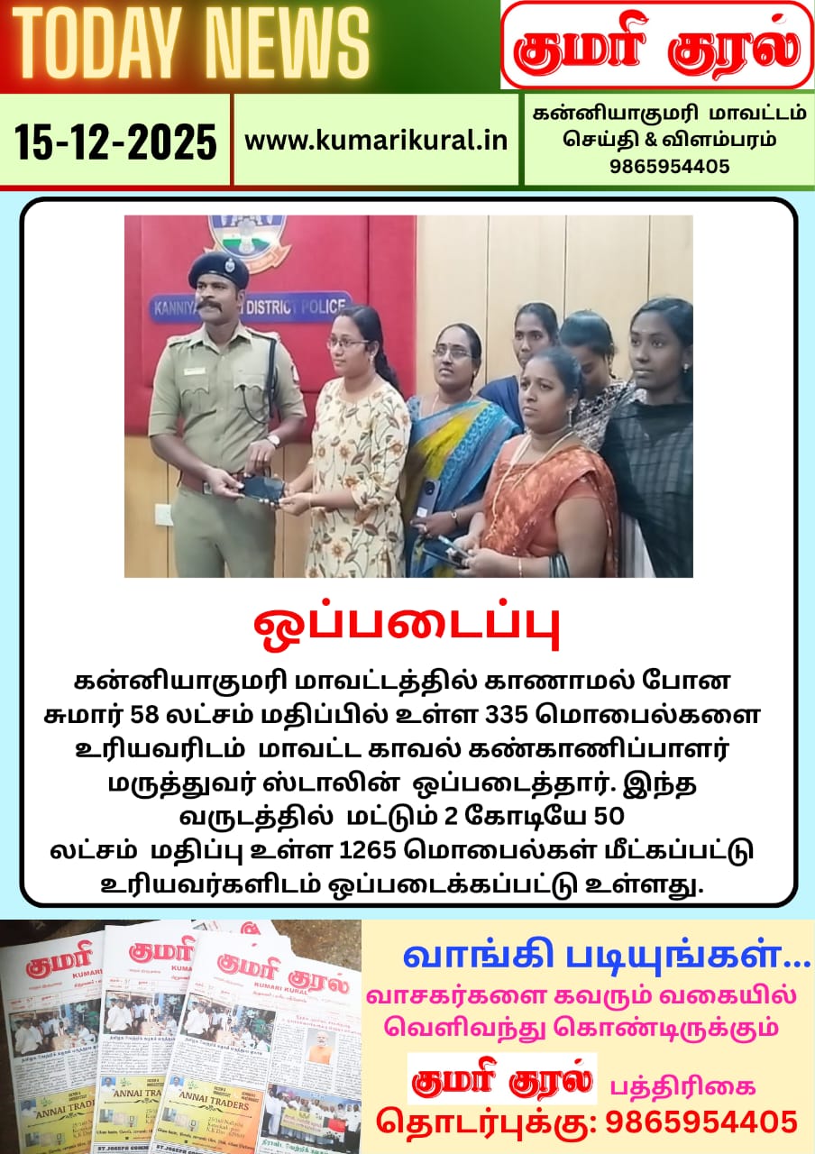 • குமரி குரல் பத்திரிகை சார்பில் வாசகர்கள், விளம்பரதாரர்கள் மற்றும் அனைவருக்கும் கிறிஸ்துமஸ் வாழ்த்துக்கள்