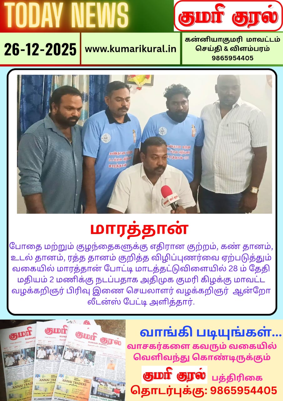 • குமரி குரல் பத்திரிகை சார்பில் வாசகர்கள், விளம்பரதாரர்கள் மற்றும் அனைவருக்கும் கிறிஸ்துமஸ் வாழ்த்துக்கள்