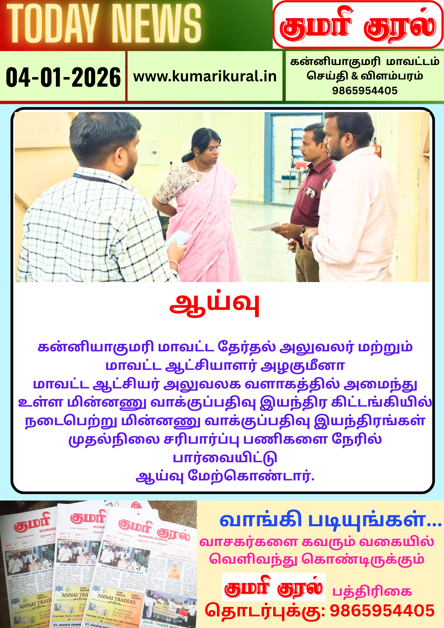 Previous: விவசாயிகள் குறைதீர்க்கும் நாள் கூட்டம்
