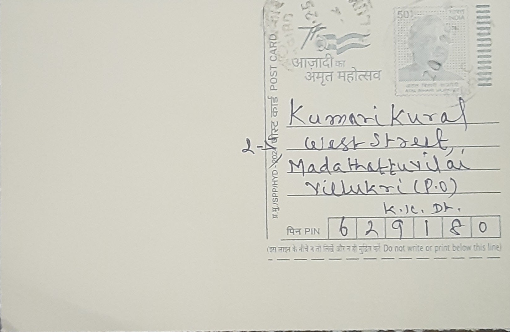 குமரி குரல் பத்திரிகைக்கு போஸ்ட் கார்டில் தகவல் அனுப்பிய வாசகருக்கு நன்றி.