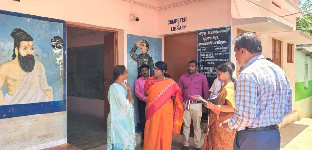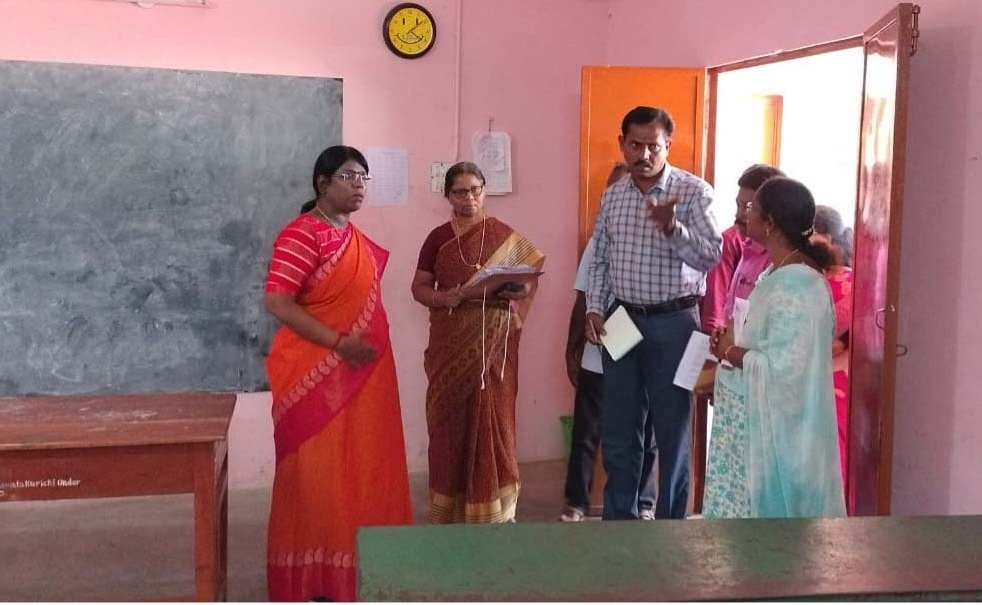நடைபெற்ற ஆய்வில் தலைமையாசிரியர்கள், அலுவலர்கள் உட்பட பலர் கலந்துகொண்டார்கள்.