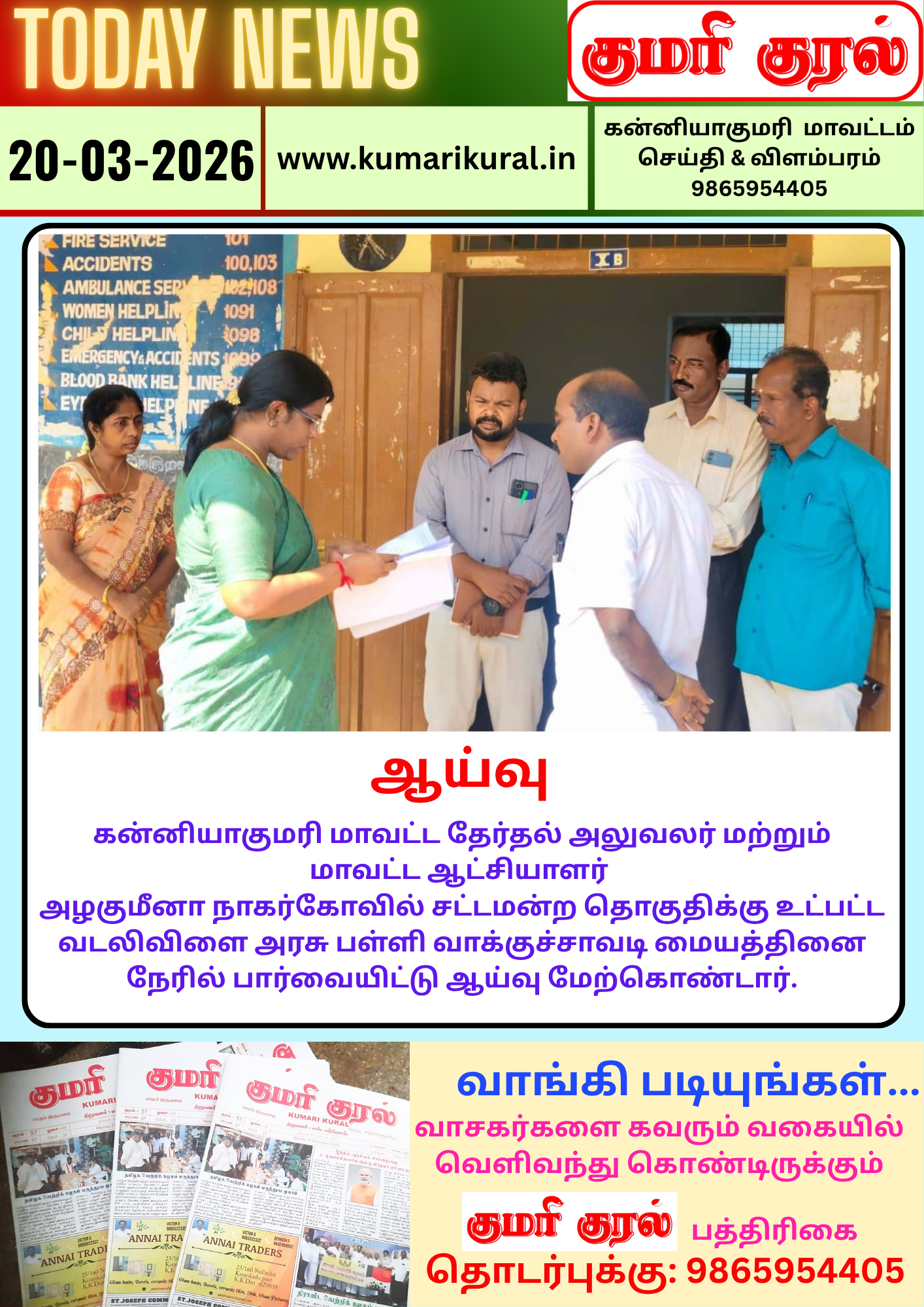 பள்ளி மாணவ, மாணவிகளின் பத்திரிகை வாசிப்பு தன்மையை ஊக்குவிக்க குமரி குரல் பத்திரிகை வழங்கல்