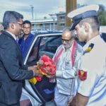 ஜார்கண்ட் மாநில ஆளுநர் சி.பி. ராதாகிருஷ்ணன் கன்னியாகுமரி மாவட்டத்திற்கு வருகை தந்ததையொட்டி மாவட்ட ஆட்சியாளர் ஸ்ரீதர் நாகர்கோவில் அரசு விருந்தினர் மாளிகையில் பூங்கொத்து கொடுத்து வரவேற்றார்.